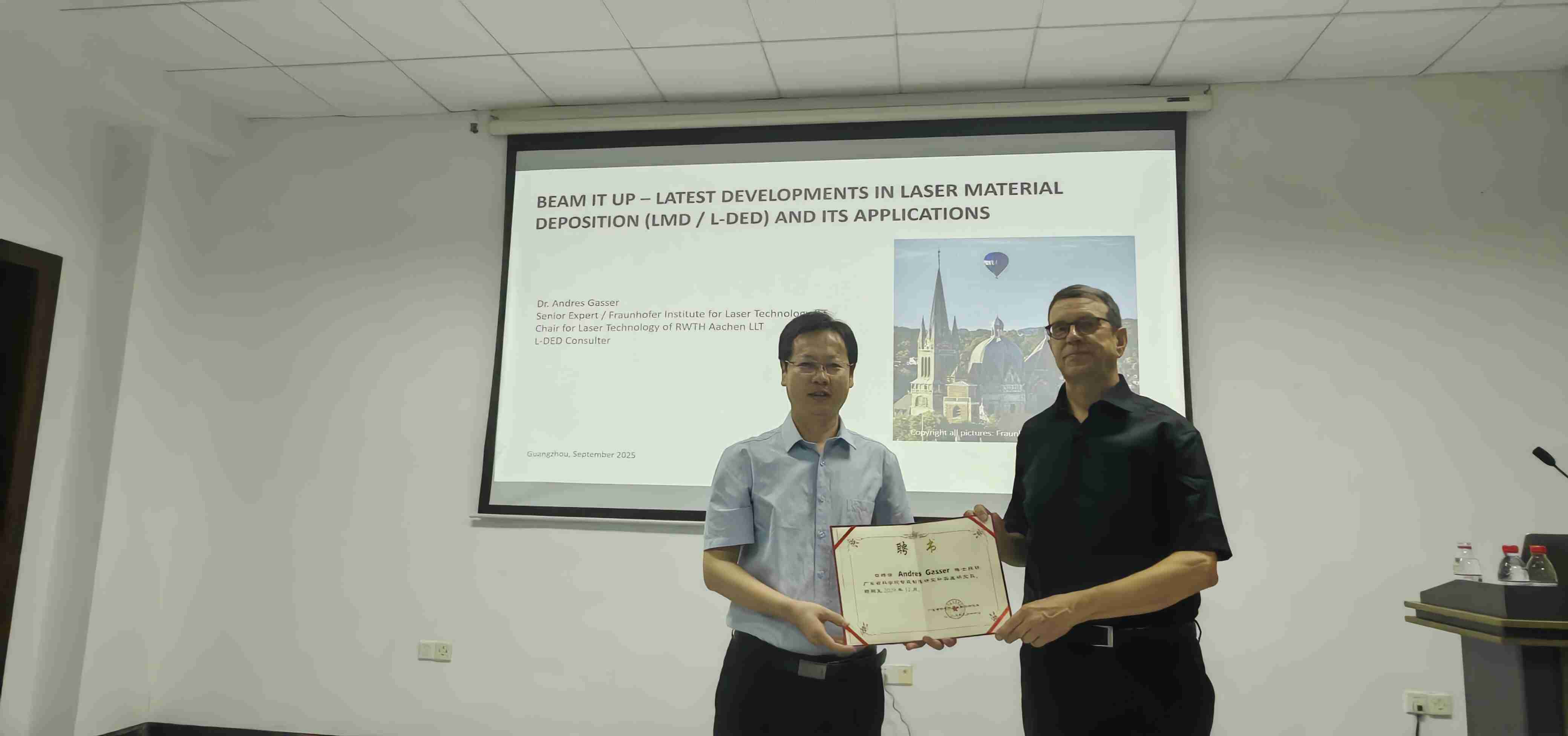 9月16日,广东省科学院智能制造研究所举办智能制造大讲堂(第十四期),特别邀请德国弗劳恩霍夫激光技术研究所Andres Gasser博士作《Latest developments in laser material deposition (LMD or L-DED) and its applications》报告。